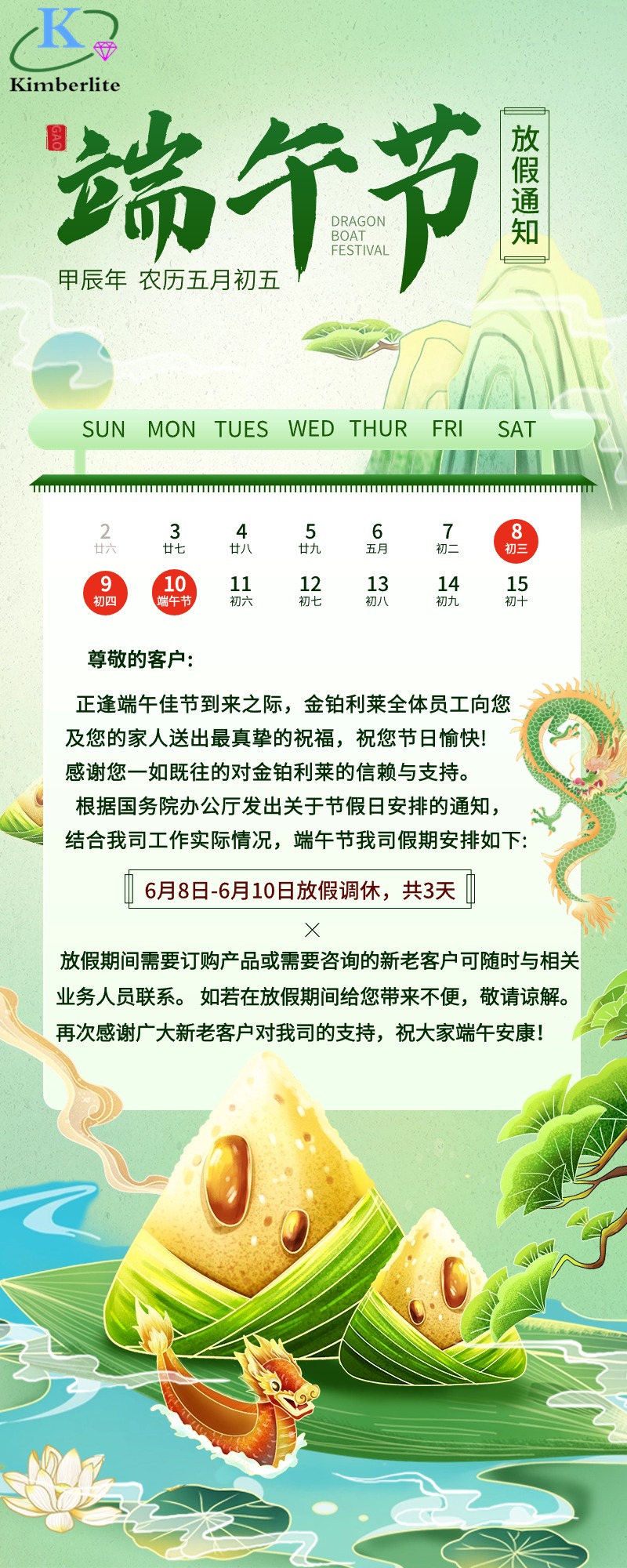 深圳金鉑利萊科技有限公司2024年端午節(jié)放假通知!